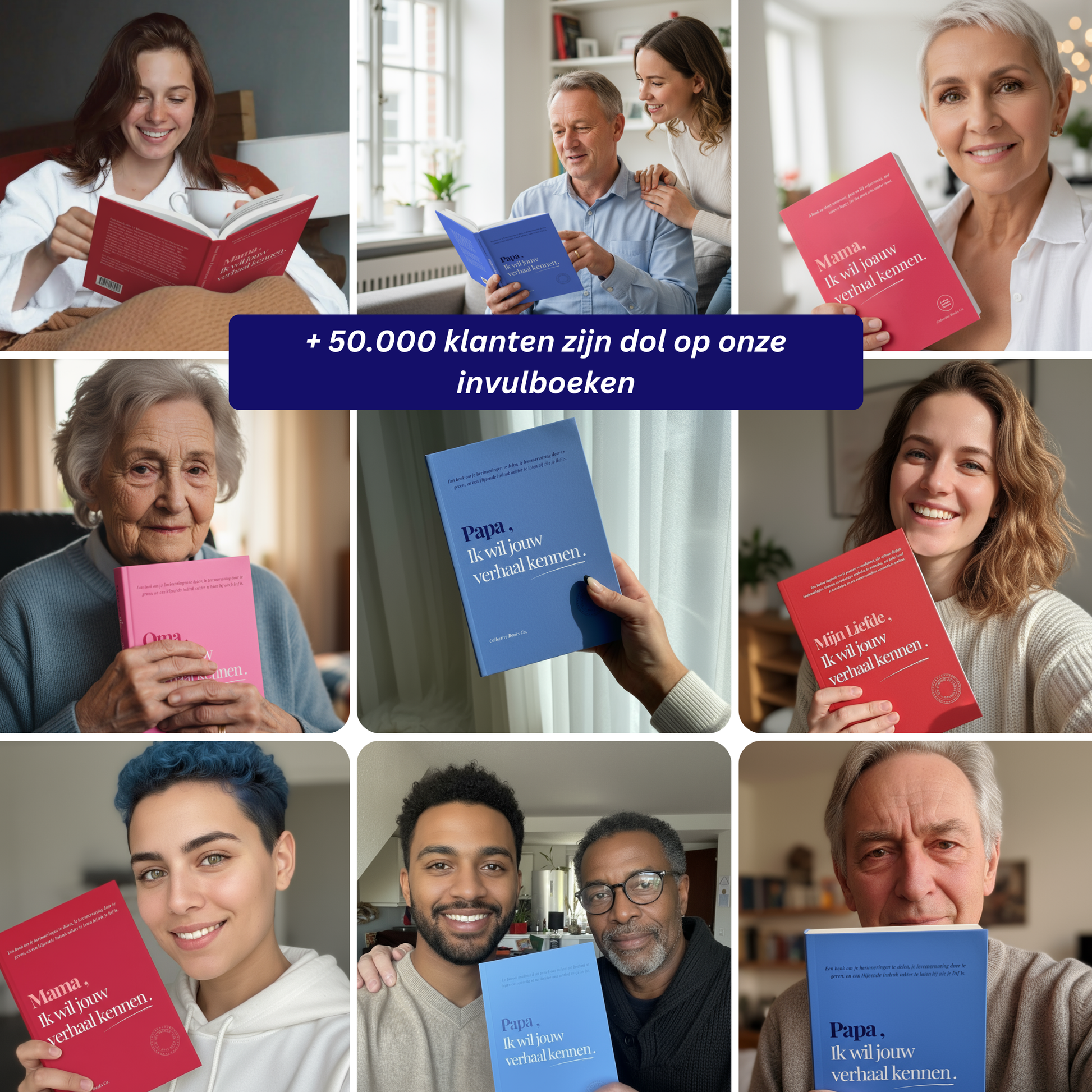 Dat hangt af van de persoon. Sommigen vullen het in een paar dagen in, terwijl anderen er enkele maanden over doen. Het dagboek bevat diepe en persoonlijke vragen die unieke herinneringen oproepen — iedereen gaat op zijn eigen tempo, afhankelijk van zijn of haar verhaal en de wens om te delen.